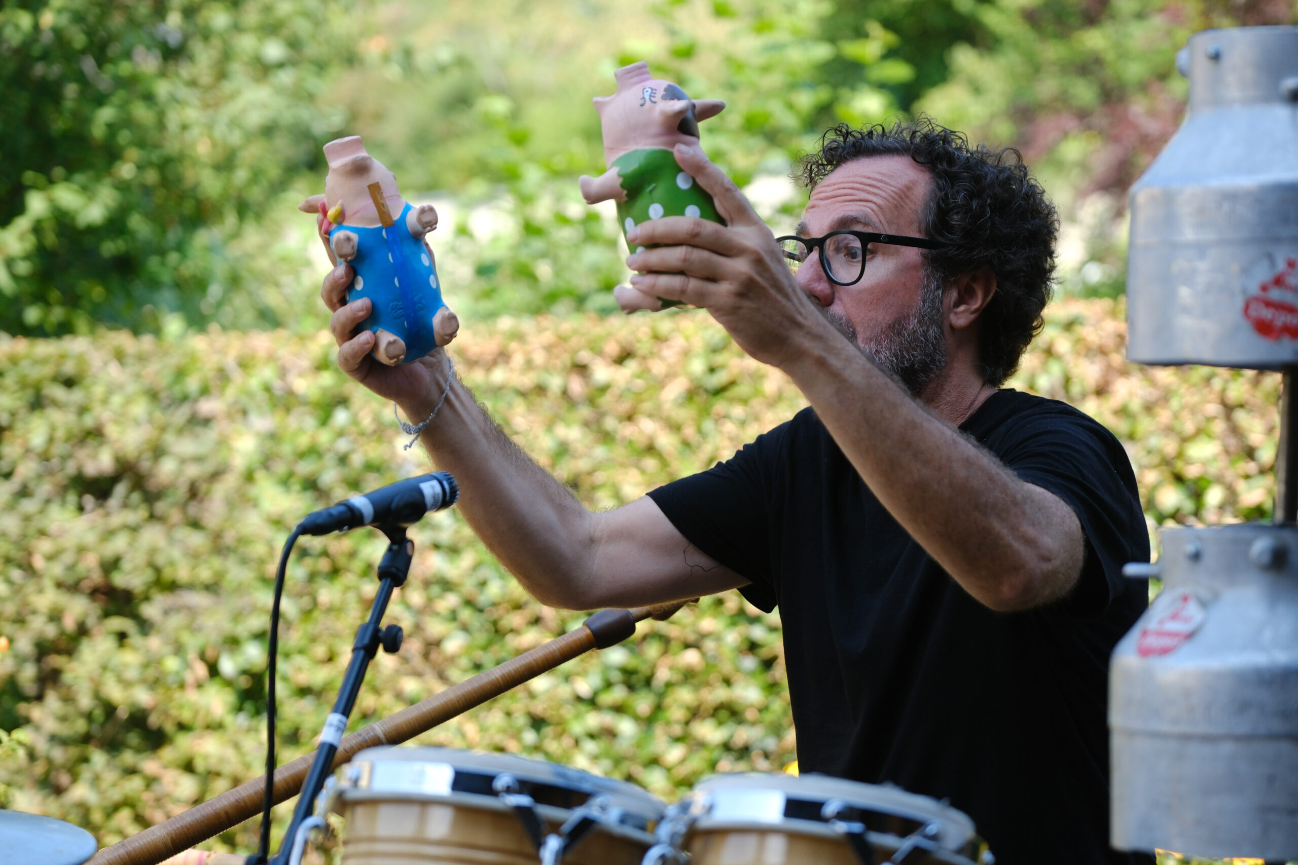 Enrico Lenzin, vielseitiger Musiker und bekannt für seine einzigartige Kombination von Perkussion und Alphorn, sorgte für eine belebende und zauberhafte Stimmung im Museumsgarten. Er war bereits bei der Eröffnung des dreijährigen Entsammlungsprojekts dabei.