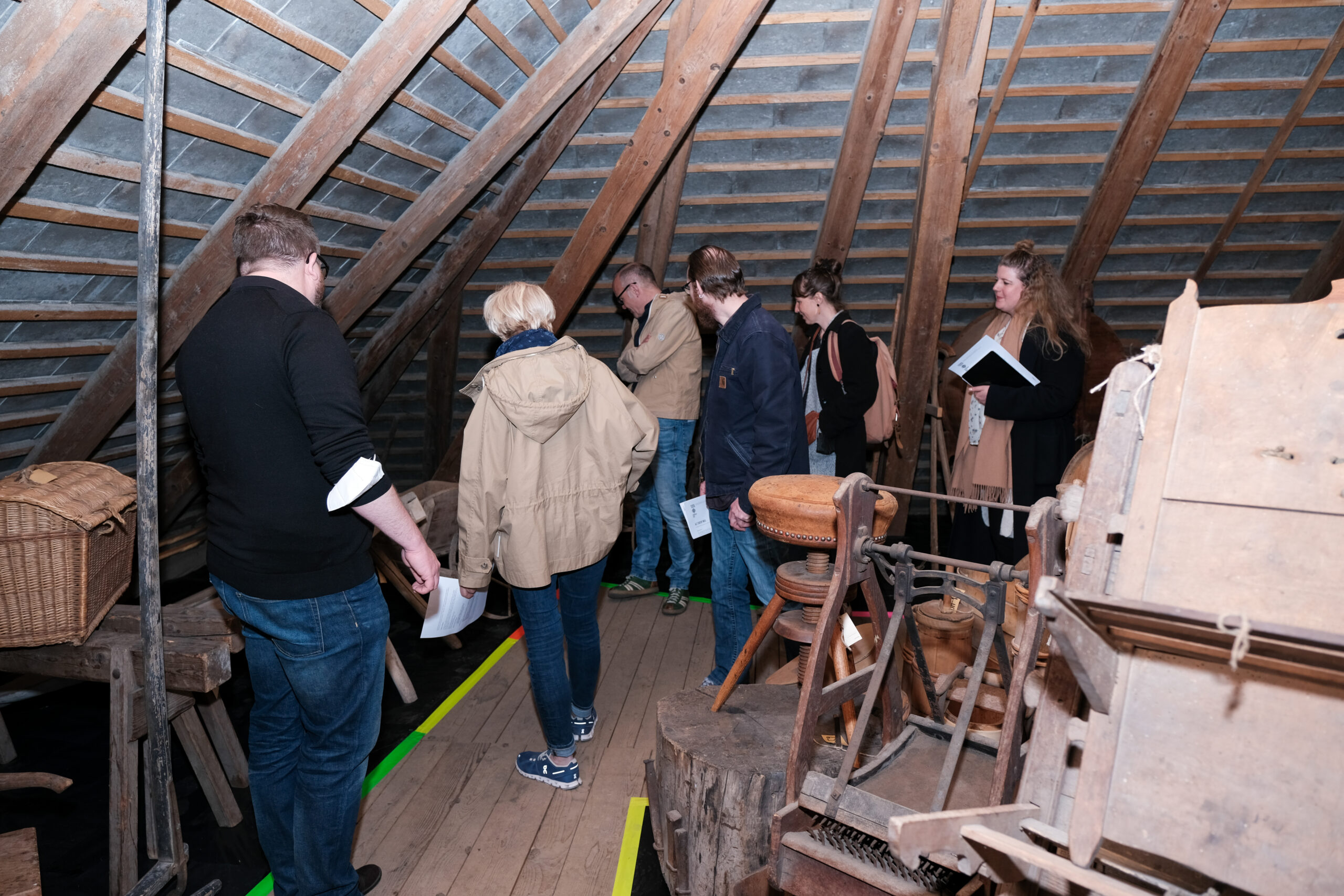 Gemeinsam besuchen wir nach der Sitzung das Jugendhaus in Langnau. Dort im Dachstock stehen die Objekte zur Besichtigung bereit, die für eine Entsammlung in Frage kommen. Schulpult, Suppennapf, Waffeleisen, Bett, Kinderjacken, Koffer und vieles mehr: Jetzt sind sie endlich sichtbar! Es handelt sich um Kulturgüter, die über Jahre hinweg von uns gesammelt und aufbewahrt wurden, aber mehrfach vorhanden oder unvollständig sind. Die Geschichte der meisten von ihnen ist nicht dokumentiert.